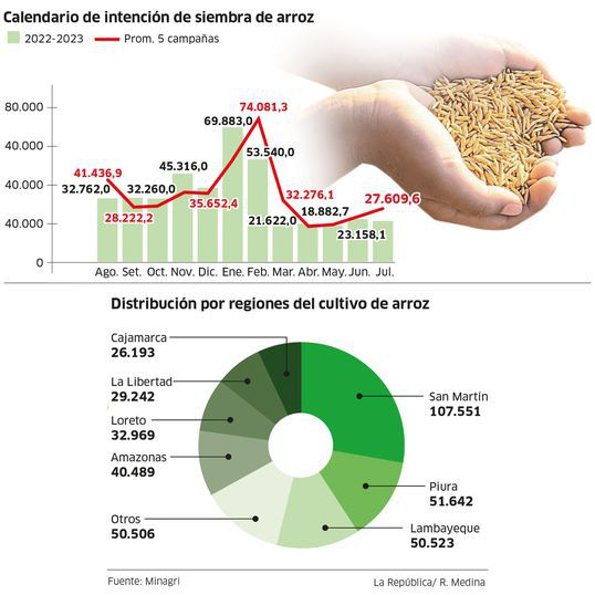 Por otro lado, el Midagri prevé que para el 2023 la producción de arroz crezca en 0.5%.
