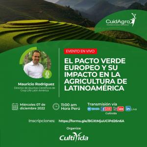 (Agraria.pe) La asociación CultiVida organiza el Webinar: “El Pacto Verde Europeo y su impacto en la agricultura de Latinoamérica”, que se realizará el miércoles 7 de diciembre a las 11:00 am. y tendrá como expositor al Dr. Mauricio Rodríguez, director de Asuntos Científicos de CropLife Latin América.
